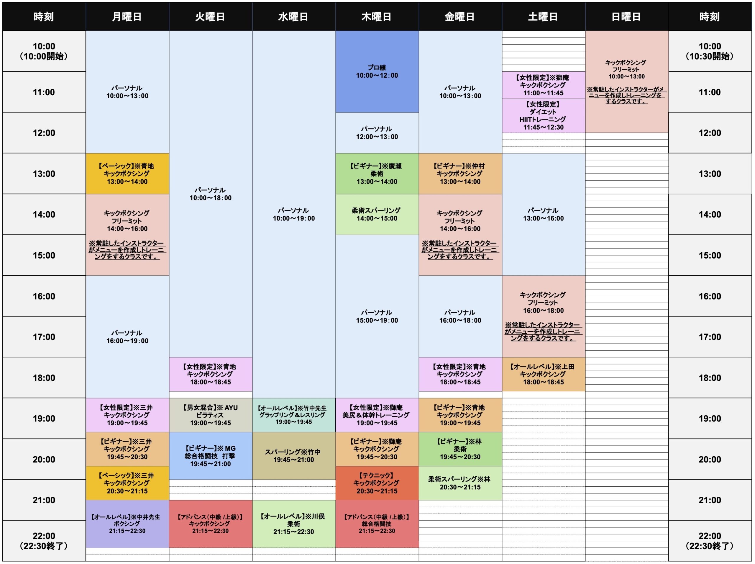 クラススケジュール